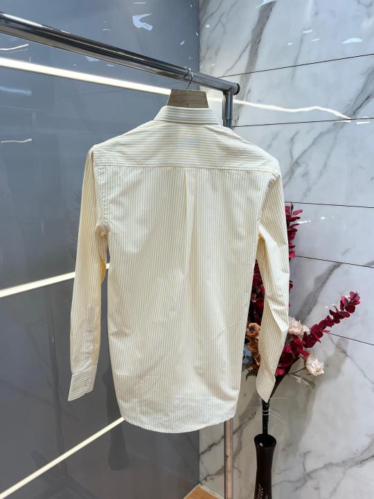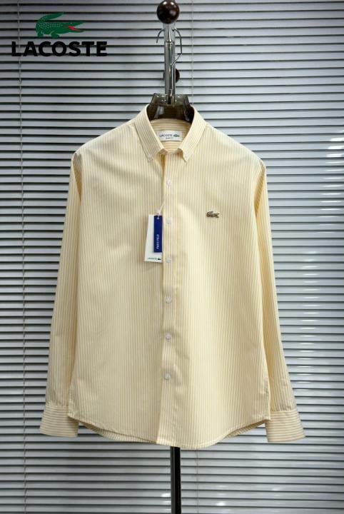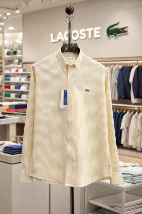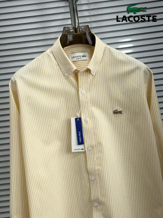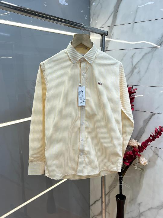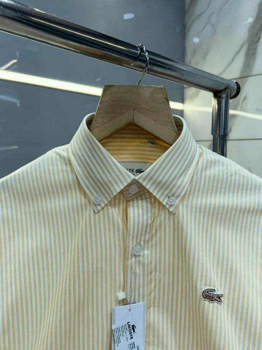 Home Shirts Lacost e Yellow Premium Shirt 100% 2ply Cotton Peach Finish Fabric With custom Branded Button Tagging And Brand Poly Bag 4040